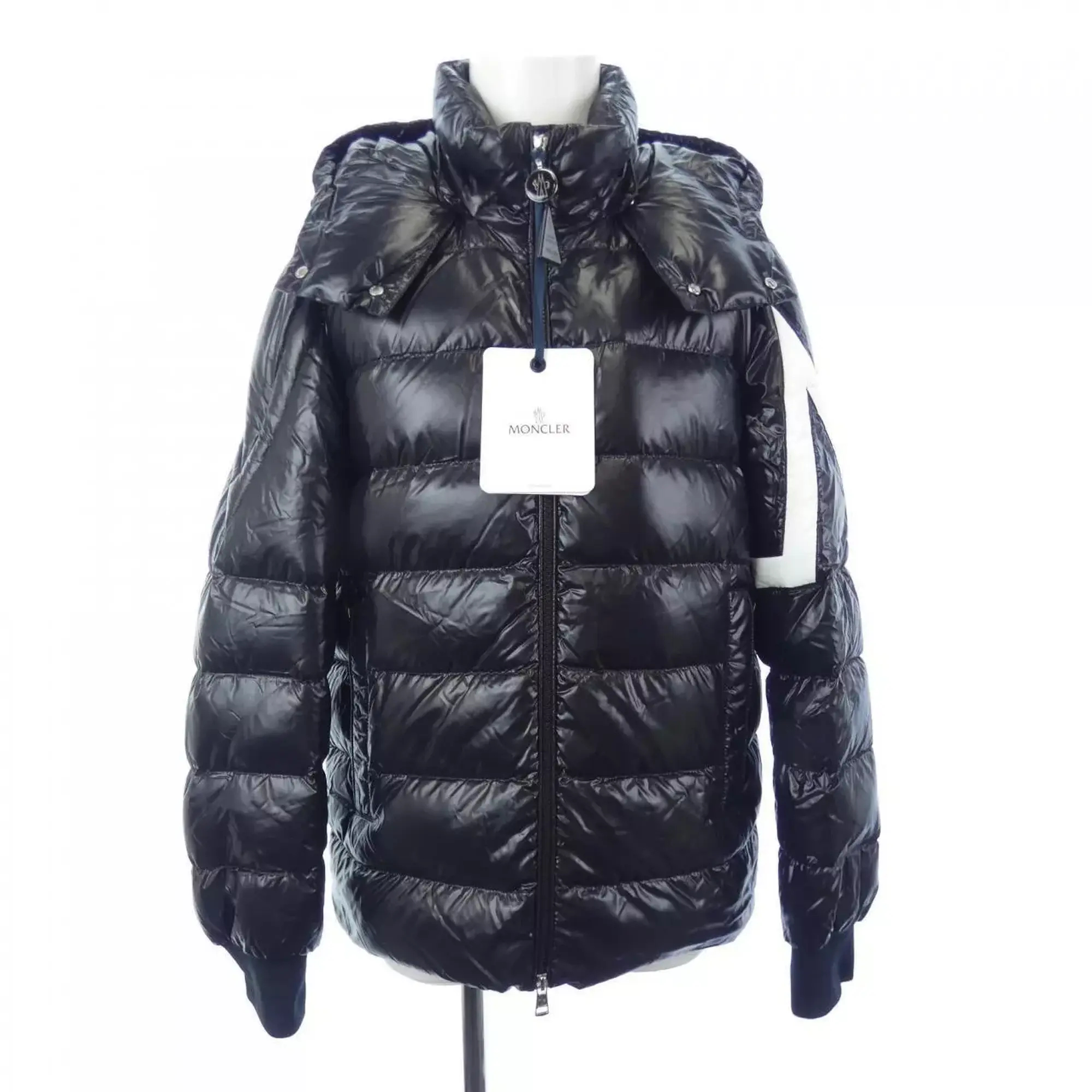 Moncler Winter Down Jacket. Stay warm in style with this Moncler down jacket featuring the iconic arm letter M. Available in sizes S-XXL.
